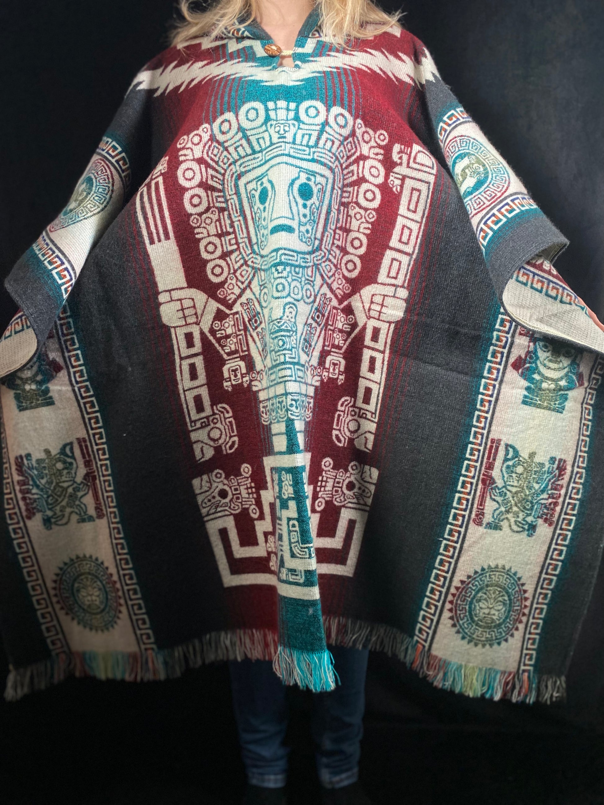 Découvrez l’authenticité et le savoir-faire andin à travers nos magnifiques ponchos artisanaux inspirés du motif sacré Wiracocha. Confectionnés à Otavalo, en Équateur, ces ponchos sont le fruit d’un héritage textile ancestral transmis de génération en génération.